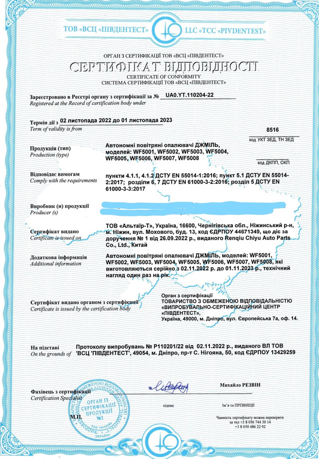 Сертифікована якість: Вся лінійка автономних опалювачів проходить обов'язкову сертифікацію, що є офіційним підтвердженням їхньої безпеки та відповідності стандартам.